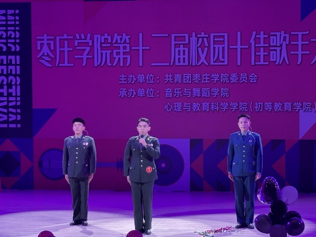 决赛现场,我院参赛选手以军装造型亮相,共同演绎歌曲《当那一天来临》。主唱李承可歌声铿锵有力,将军人的豪迈气质与责任担当融入演唱,气息稳定且情感饱满,精准传递出歌曲的使命与热血;助唱张甲鑫、姚治国的和声清亮舒展,与主唱音色形成层次互补,为表演增添了情感张力。三人军姿挺拔,军装的庄重与歌曲的激昂相得益彰,表演极具感染力。评委从演唱技巧、仪表仪态、综合素质等维度综合评定,最终我院学子李承可荣获“校园十佳歌手提名奖”。三位同学的默契配合与精彩表现,为健康管理学院在本次赛事中留下了深刻印记。
